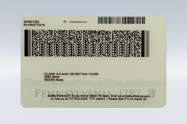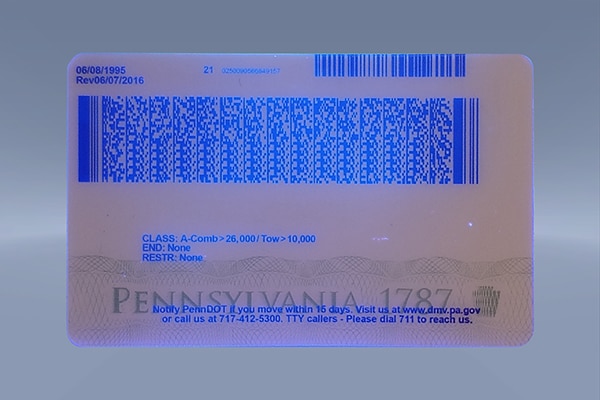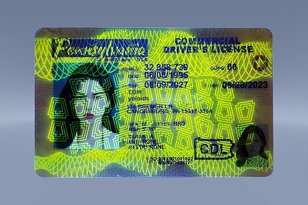 Our fake Pennsylvania CDL is crafted using advanced production processes that mirror the official card’s appearance and performance: